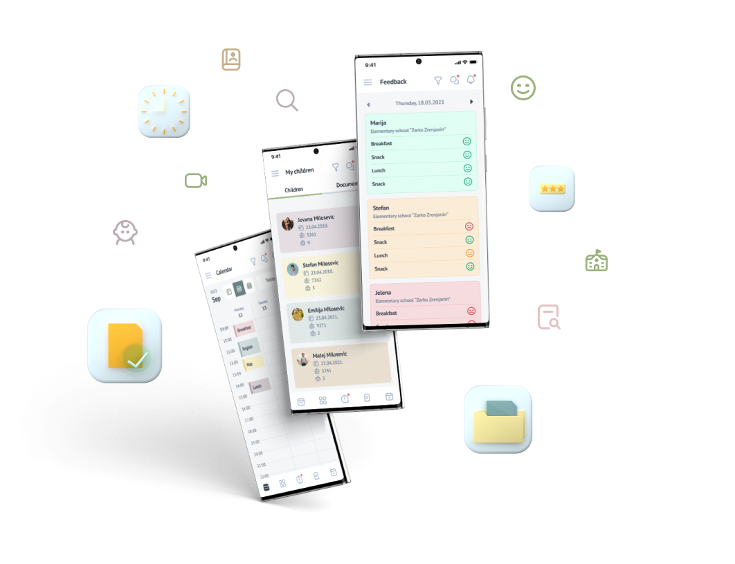 • mobilna aplikacija za vaspitače koja omogućava brže i efikasnije obavljanje svakodnevnih zadataka, što ostavlja više vremena za boravak sa decom